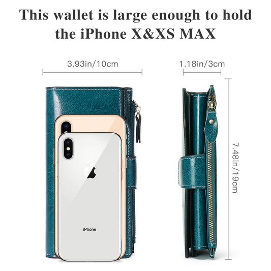 Sendefn Women Wristlet Wallets Large Capacity RFID Blocking Leather Wallets Credit Cards Organizer with Checkbook Holder