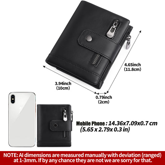 Sendefn Men's Bifold Wallet with RFID Blocking, Genuine Leather Wallet with Zip Coin Compartment