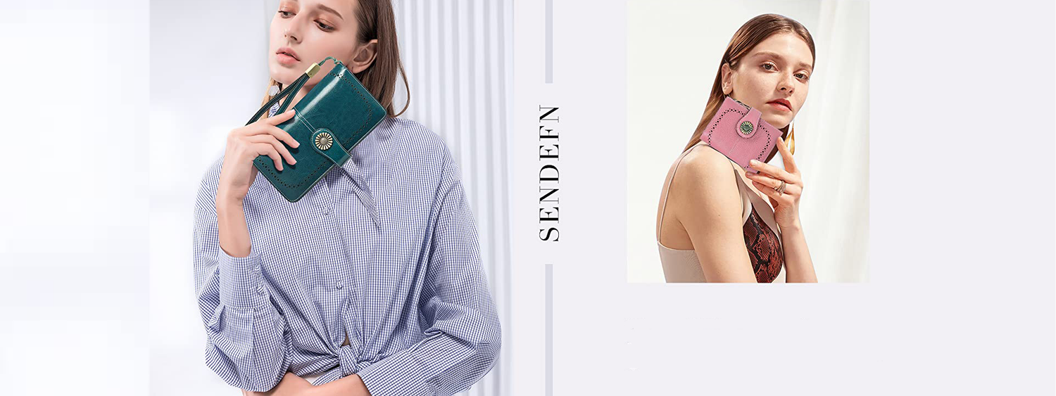 Sendefn Wallets for Women RFID Blocking Ultra Slim Real Leather Credit Card Holder Clutch