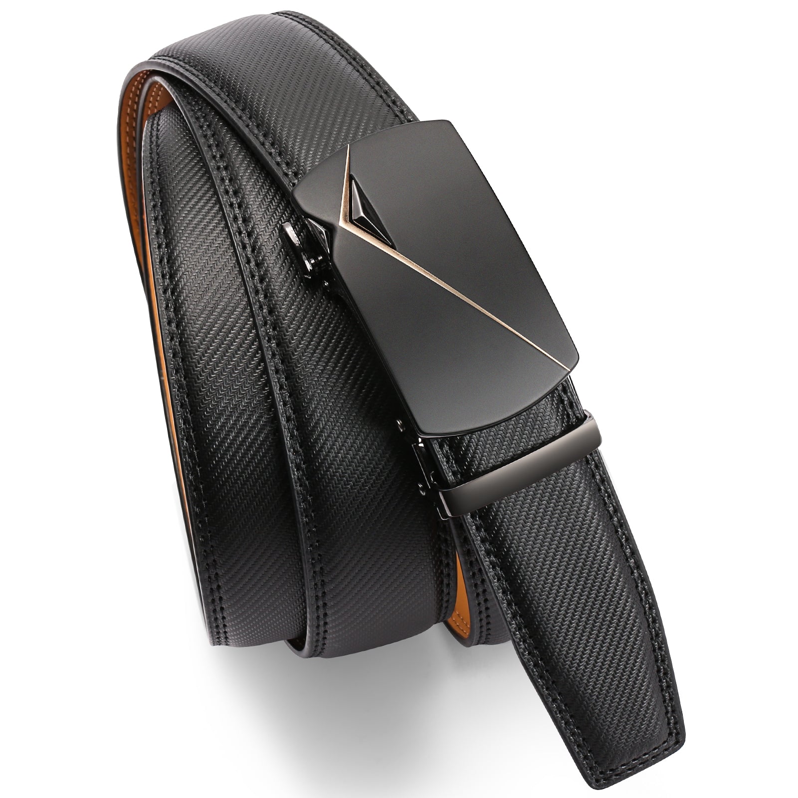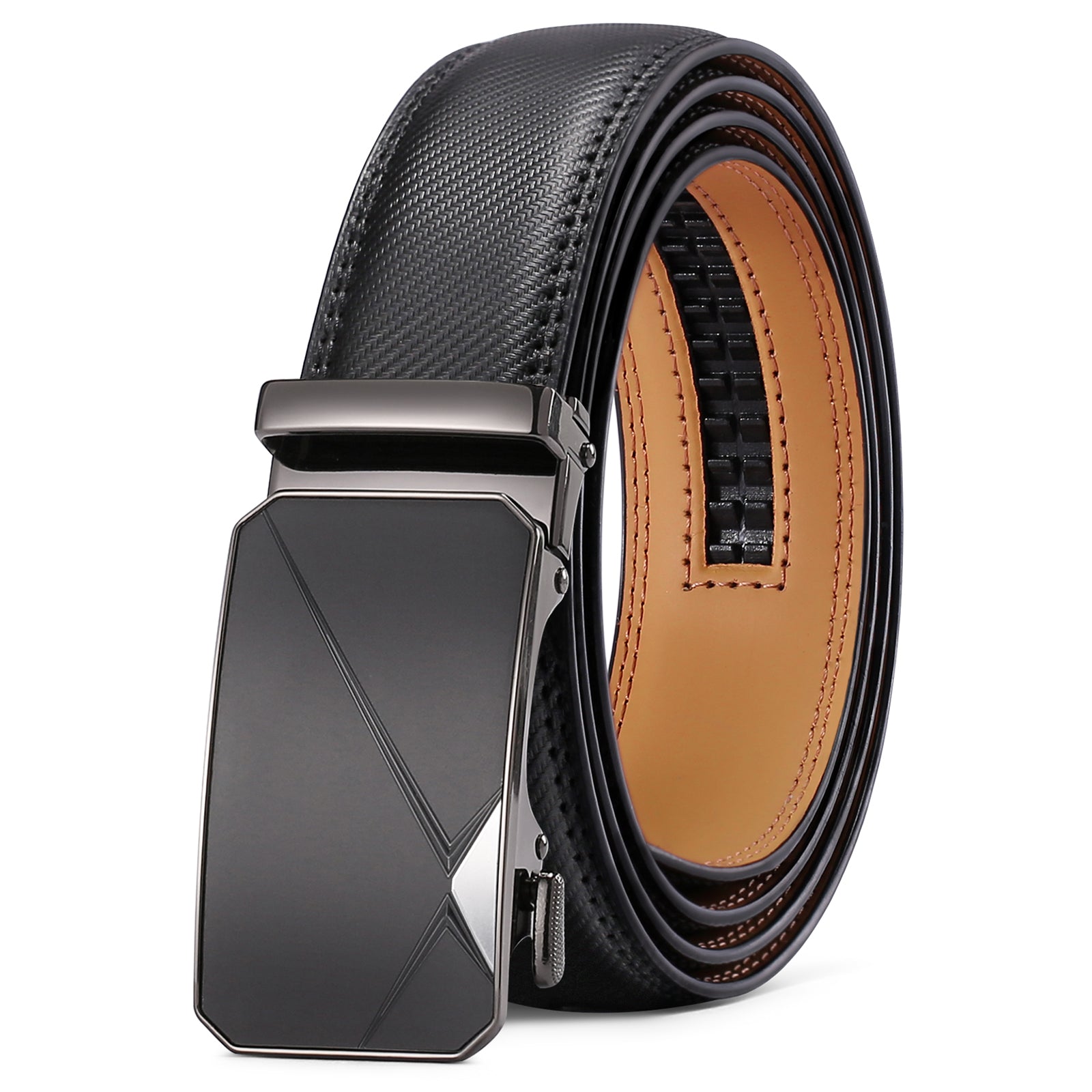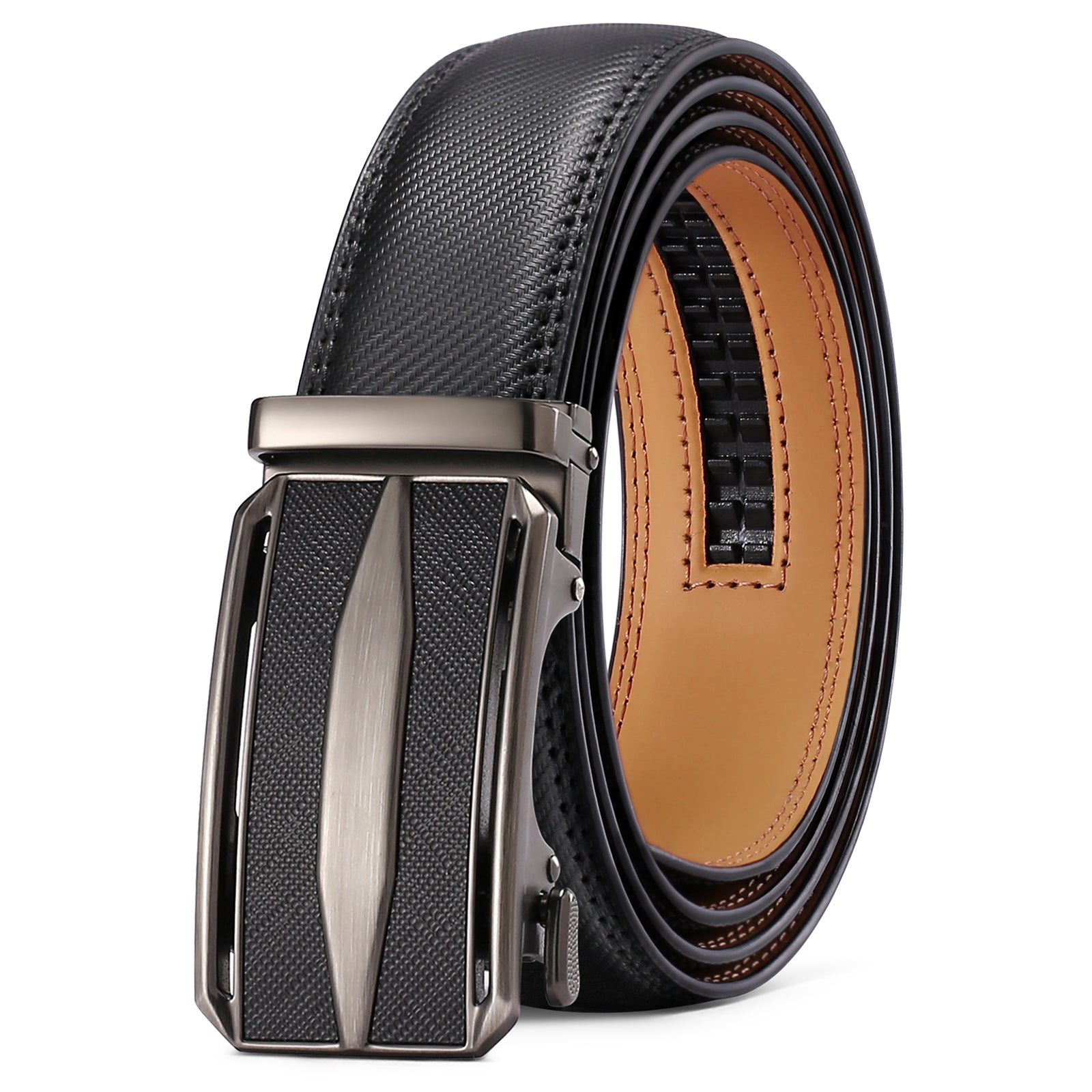 SENDEFN Leather Belt for Men Automatic Ratchet Buckle Slide Dress Casual Belts 1 3/8'' Wide, Adjustable Trim to Fit