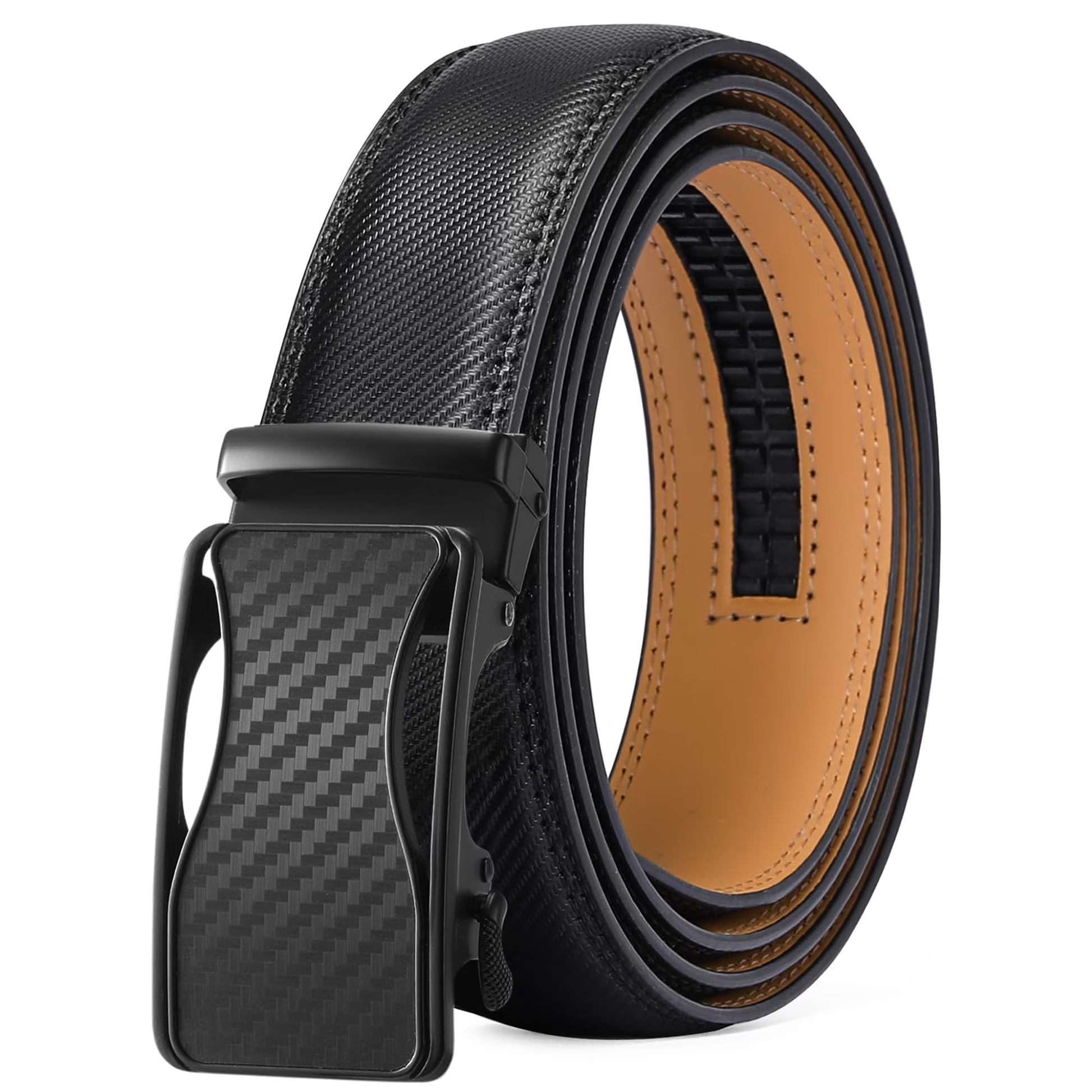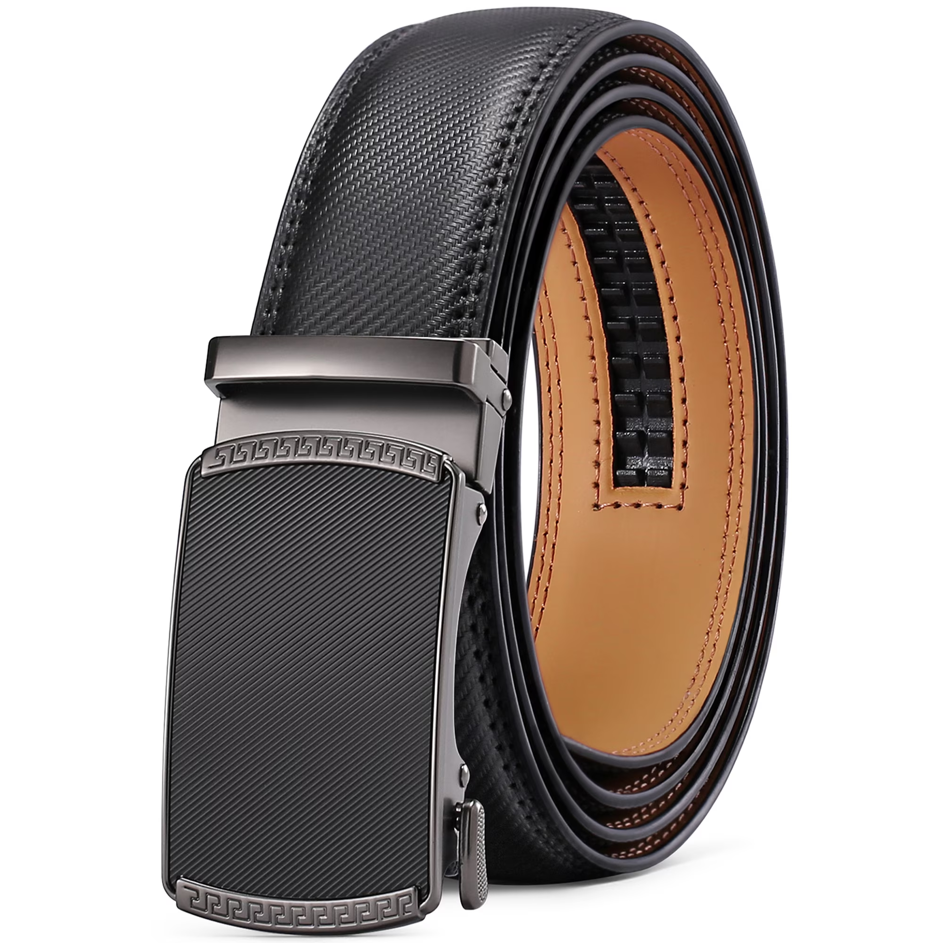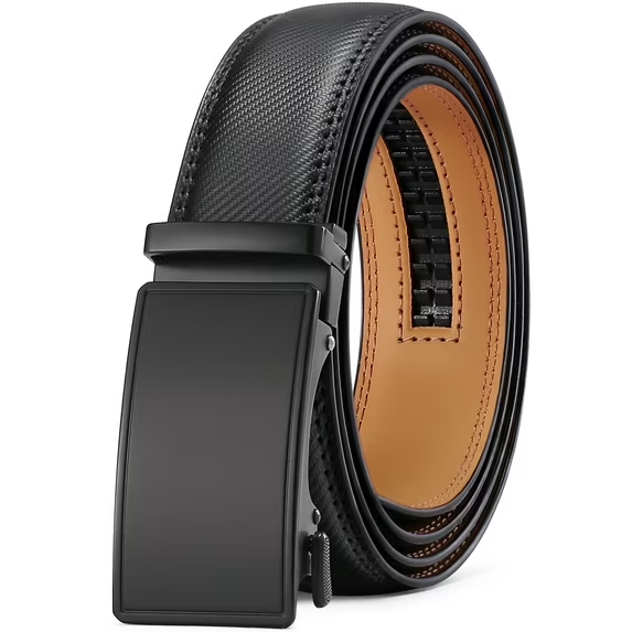 SENDEFN Leather Belt for Men Automatic Ratchet Buckle Slide Dress Casual Belts 1 3/8'' Wide, Adjustable Trim to Fit