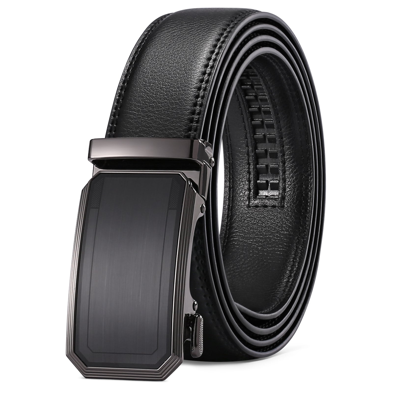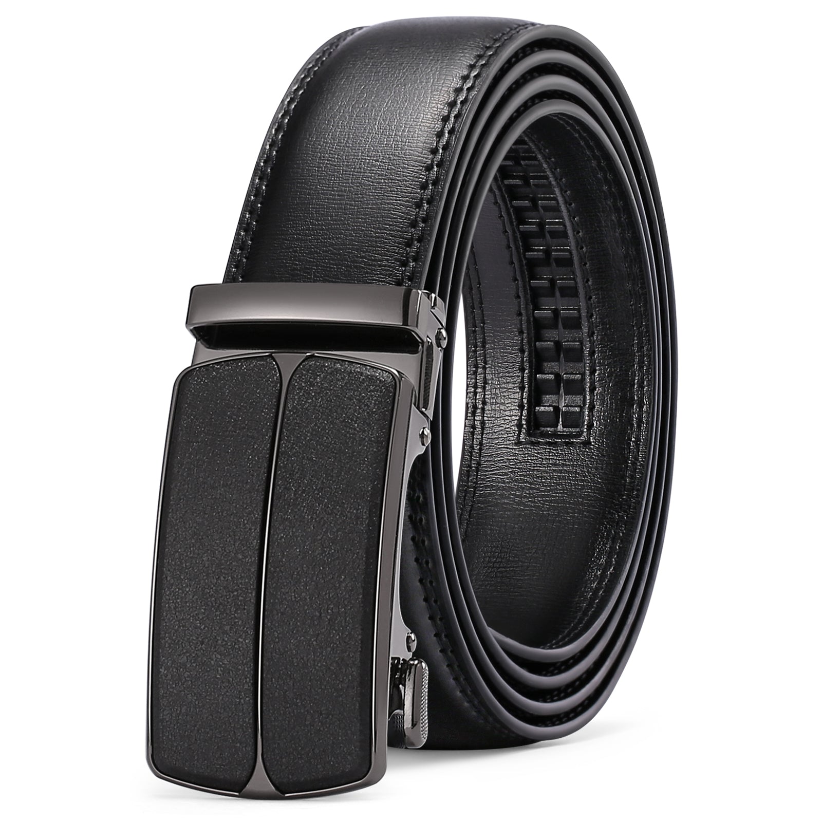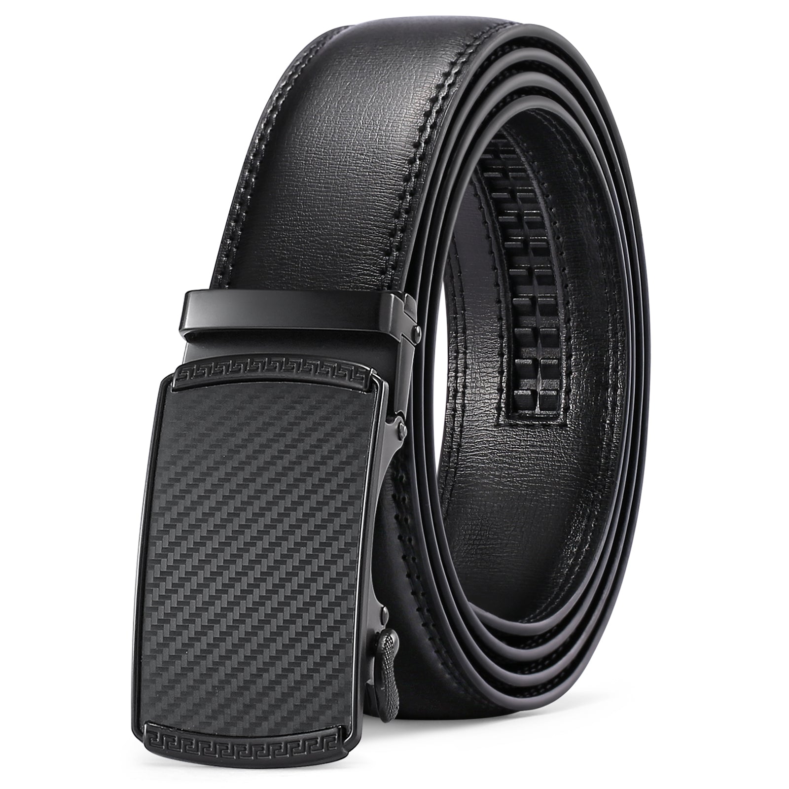 Sendefn Men's Leather Belt Automatic Ratchet Buckle Slide Belt for Dress Casual Trim to Fit with Gift Box