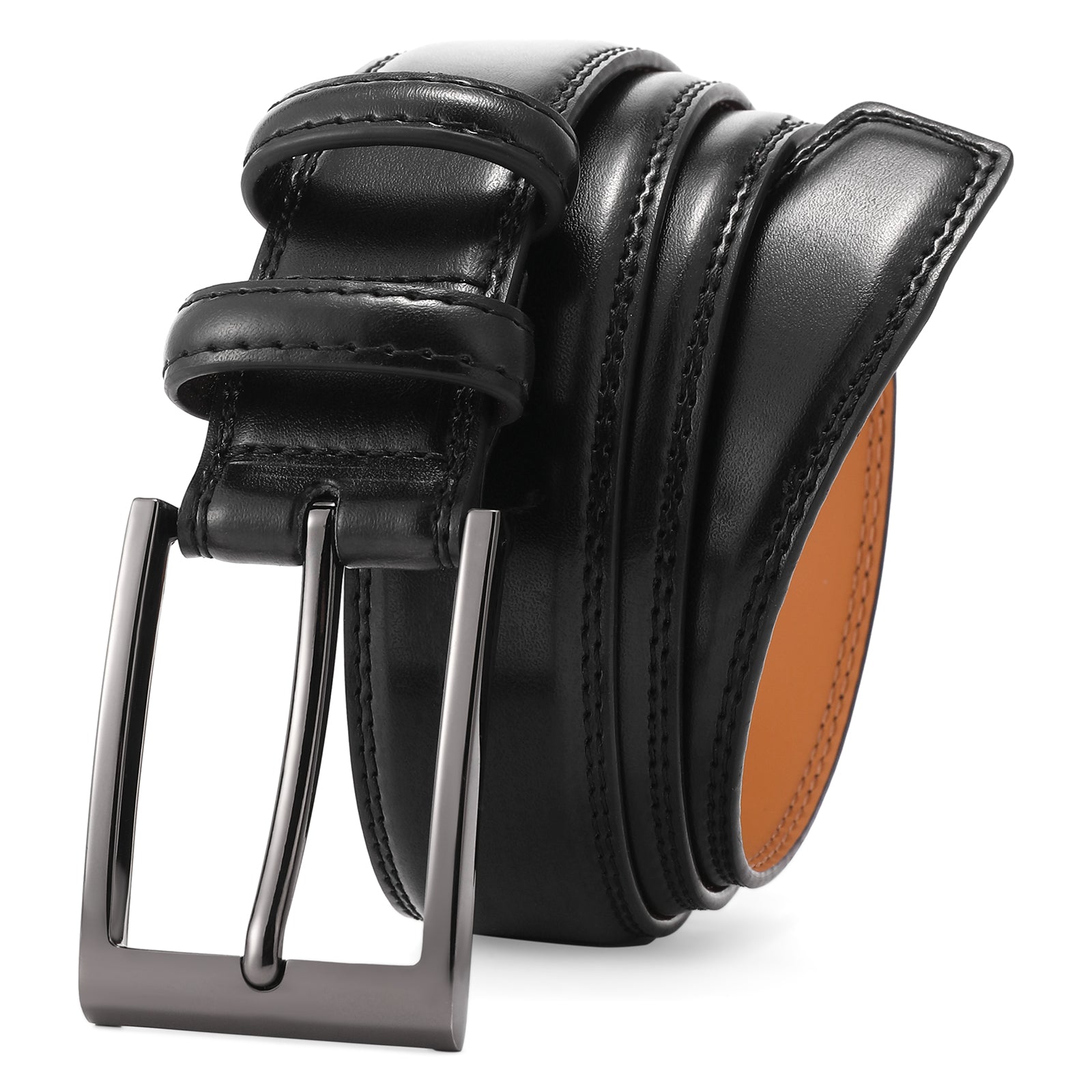 2.Versatile-- It is an ideal men accessory, to wear as an everyday leather belt; never go out of style with the classic yet stylish design of this belt, high quality material advancing your taste in fashion, the belt goes great with suit pants, jeans or formal wear.