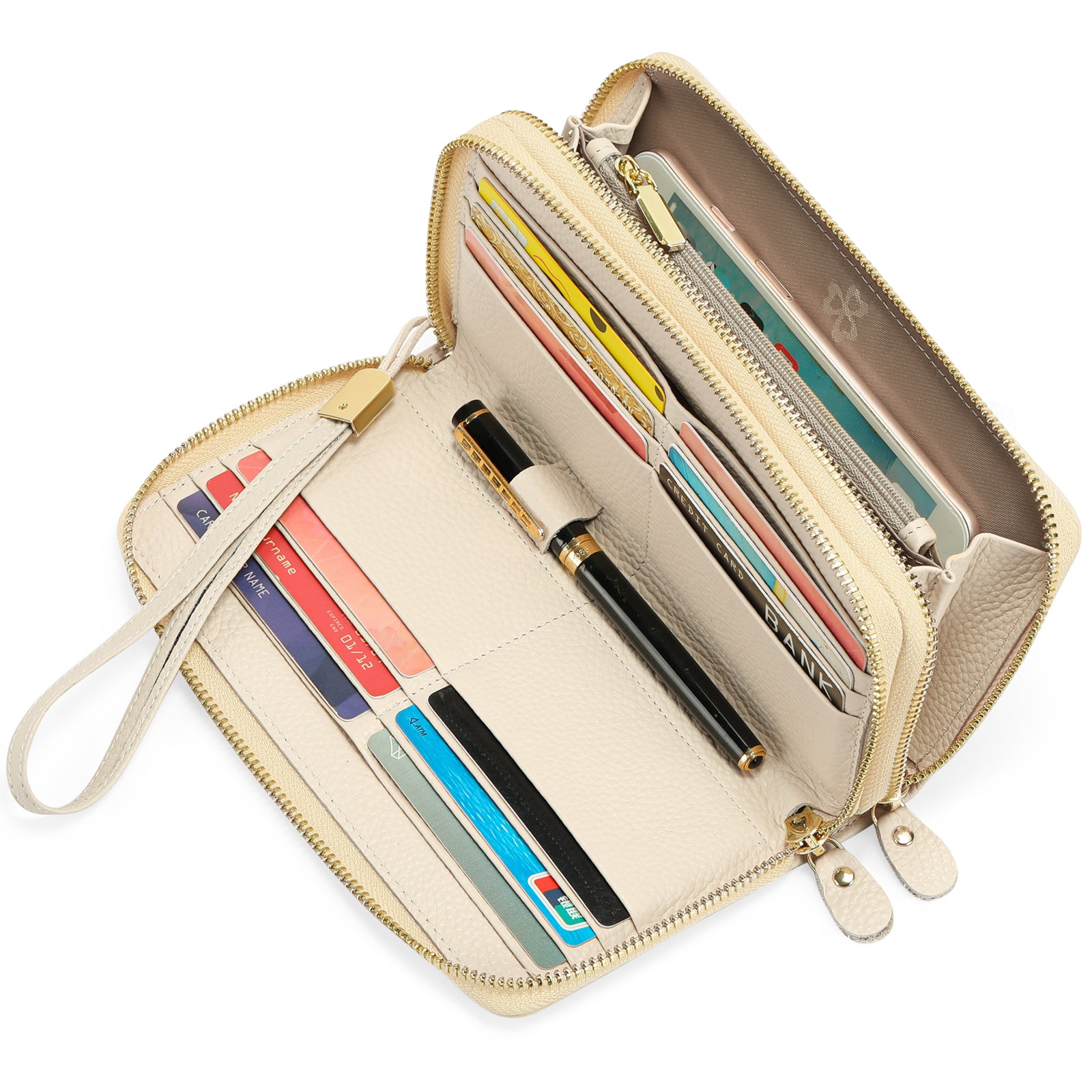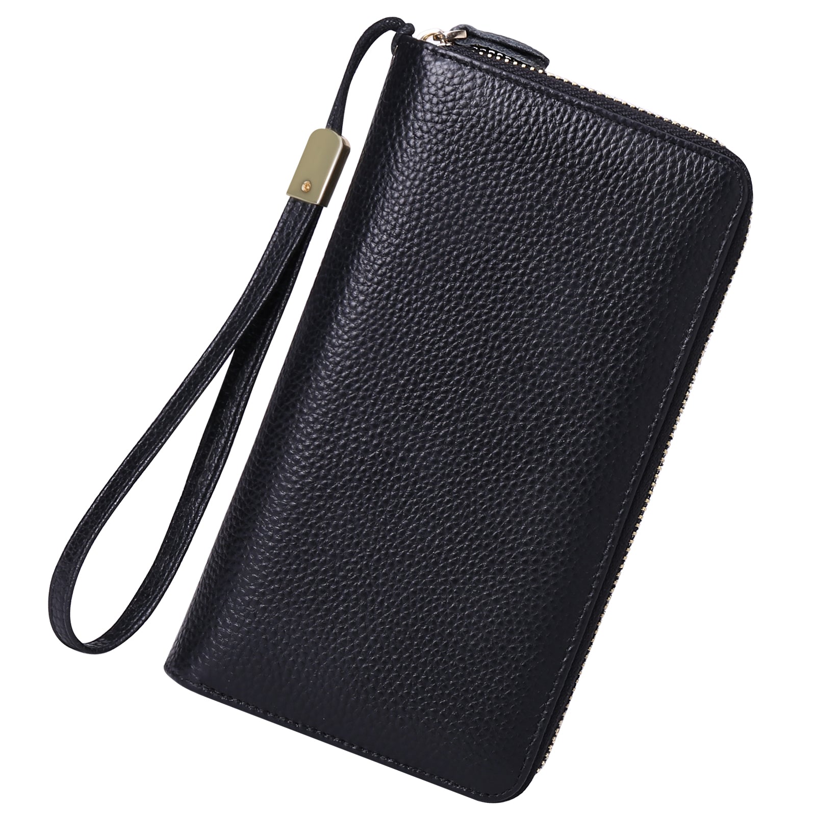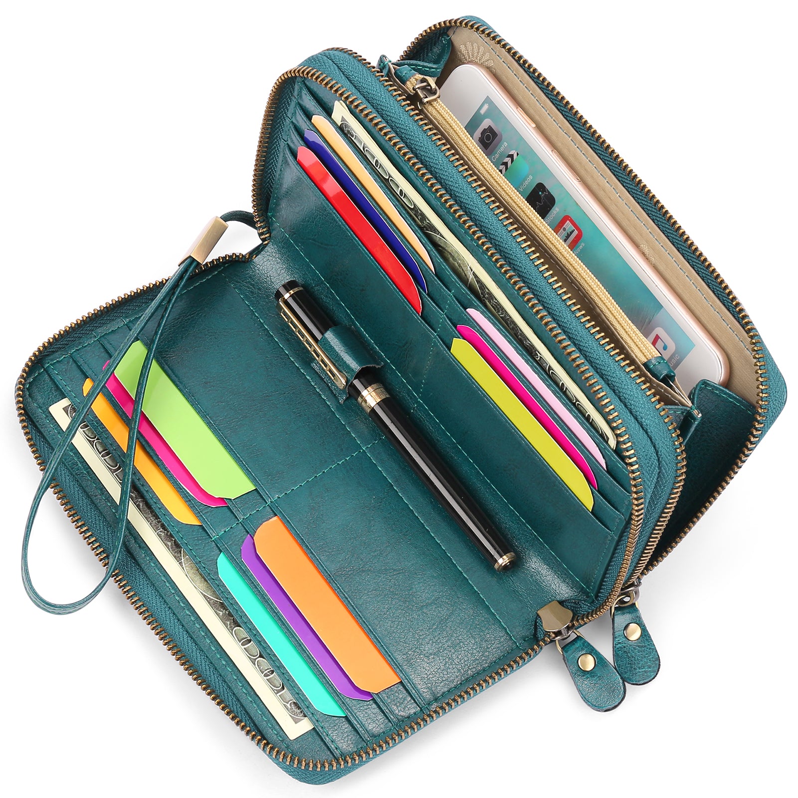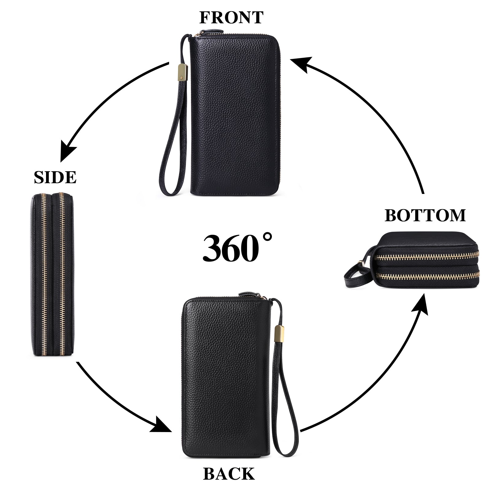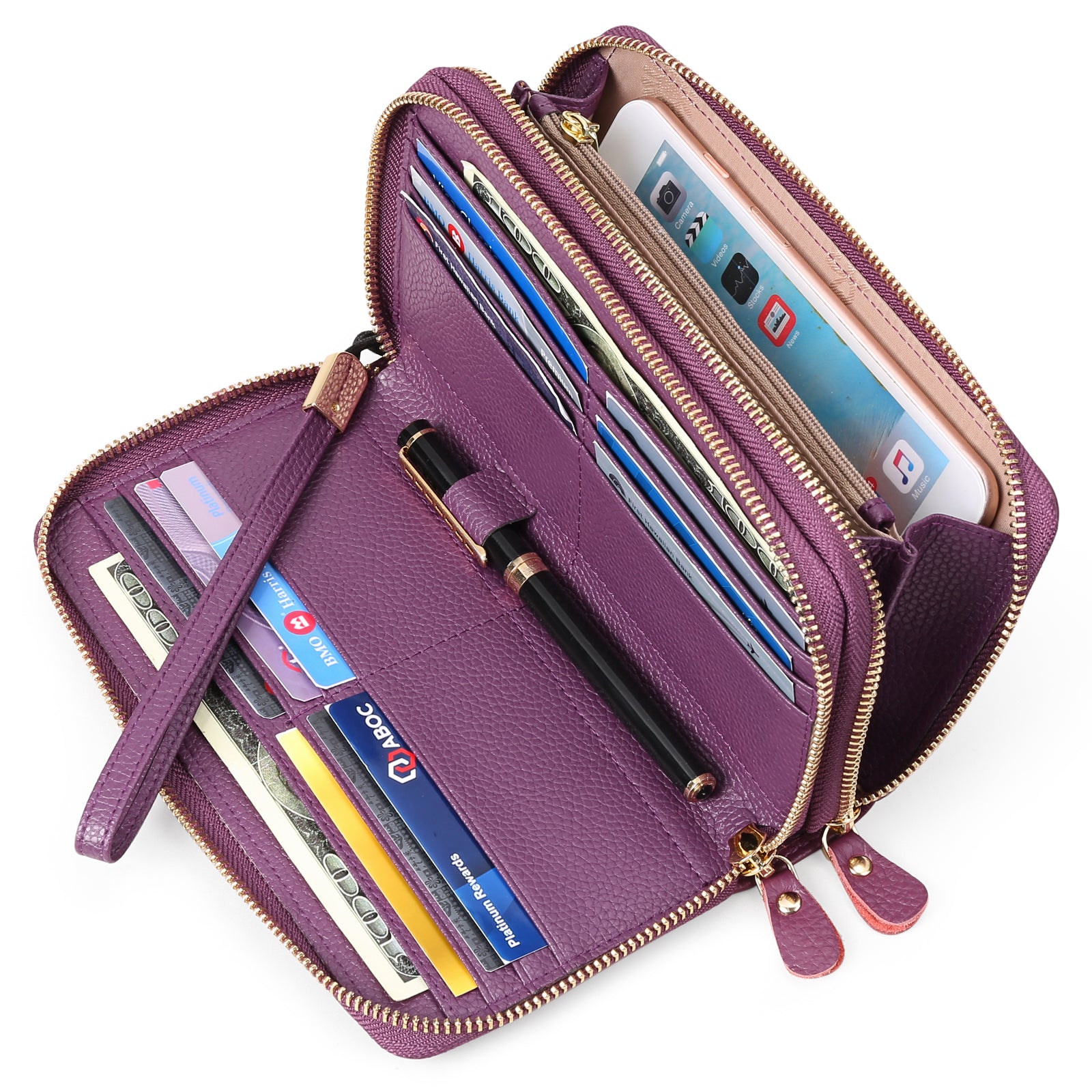 Sendefn RFID Blocking Leather Zip Wallet for Women Credit Card Cluch Holder Phone Wristlet Wallet