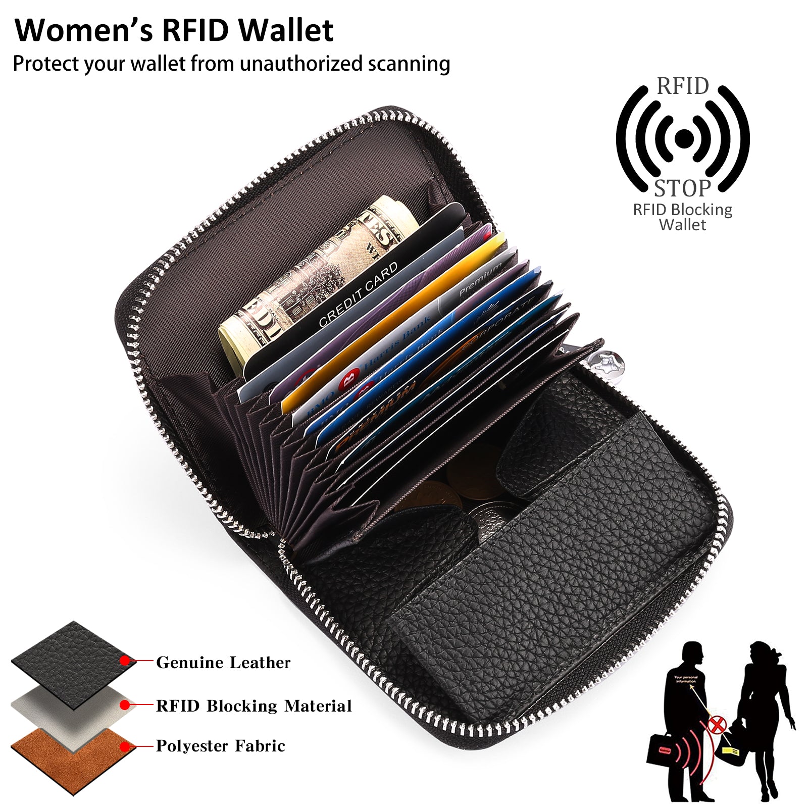 Sendefn Small Wallet for Women, RFID Blocking Credit Card Holder Zipper Card Case Wallet