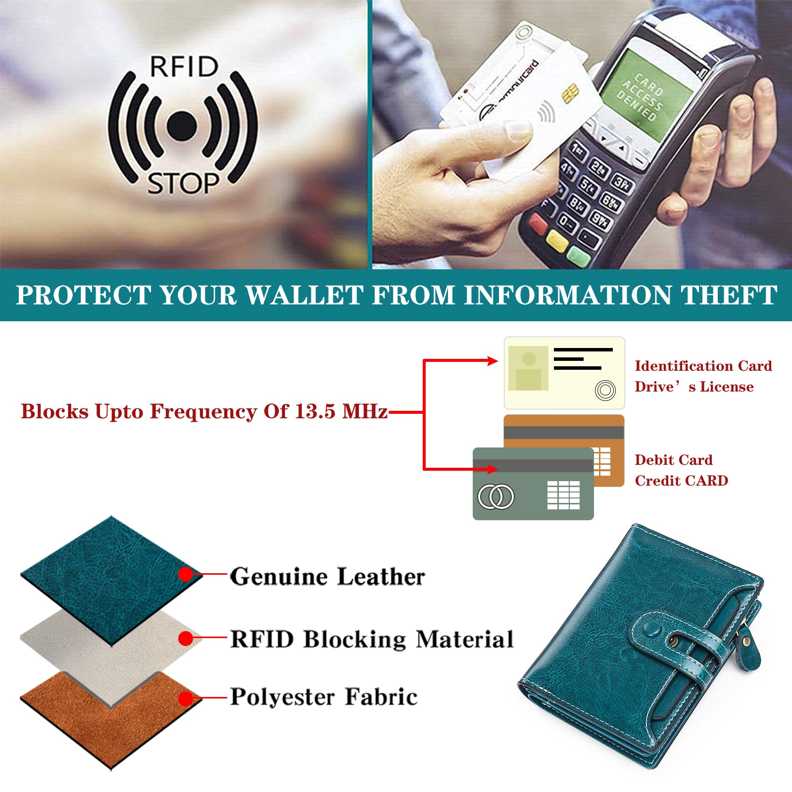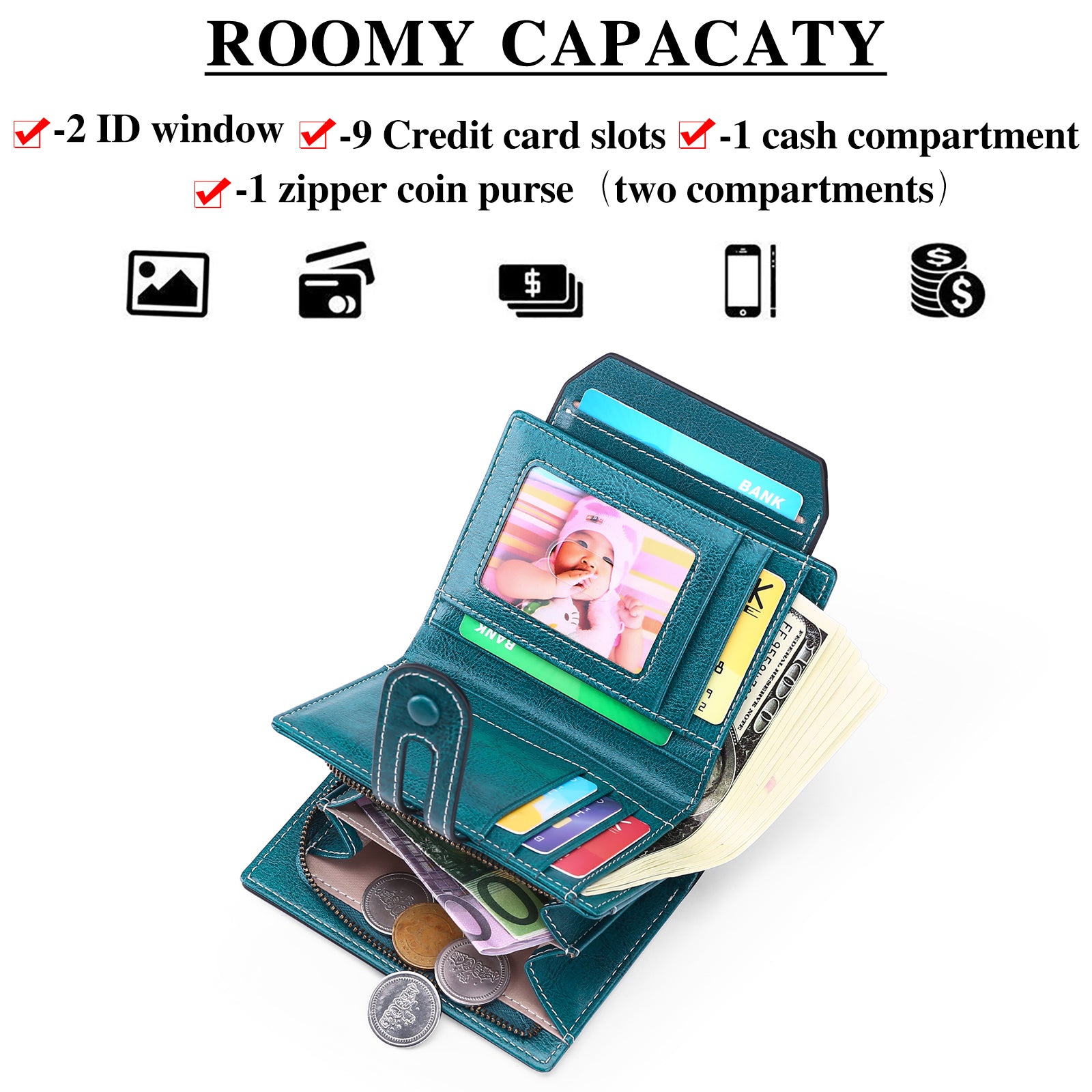 Sendefn Small Womens Wallet RFID Blocking Bifold Genuine Leather Purse with Zipper Coin Pocket ID Window