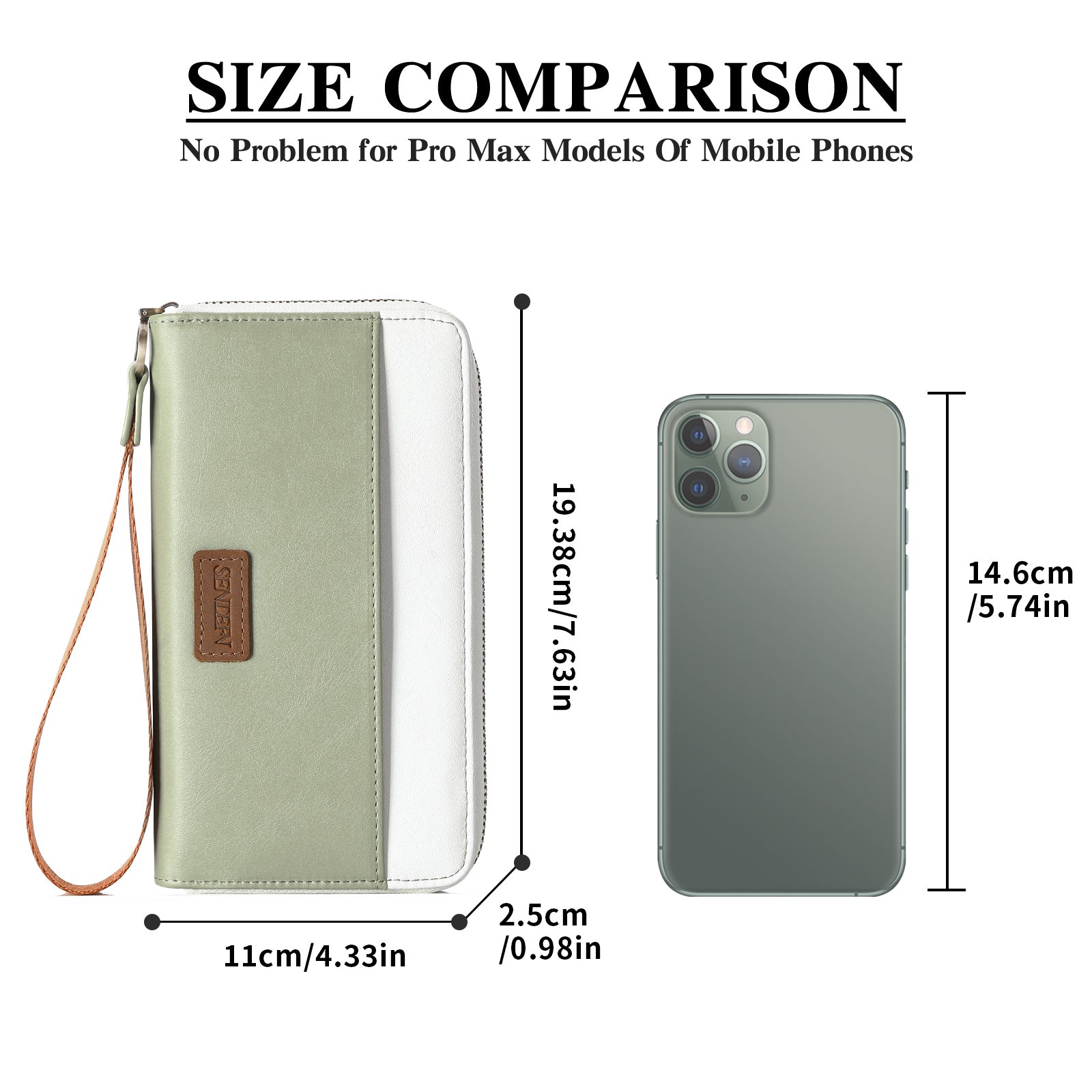 - Wristlet Wallet: This ladies clutch purse comes with a detachable wristband, perfect for busy women to wear on the go, safe and convenient. The double-zipper wallet for women with phone pockets measures 7.63 inches x 0.98 inches x 4.33 inches, enough to accommodate most sizes of phones.