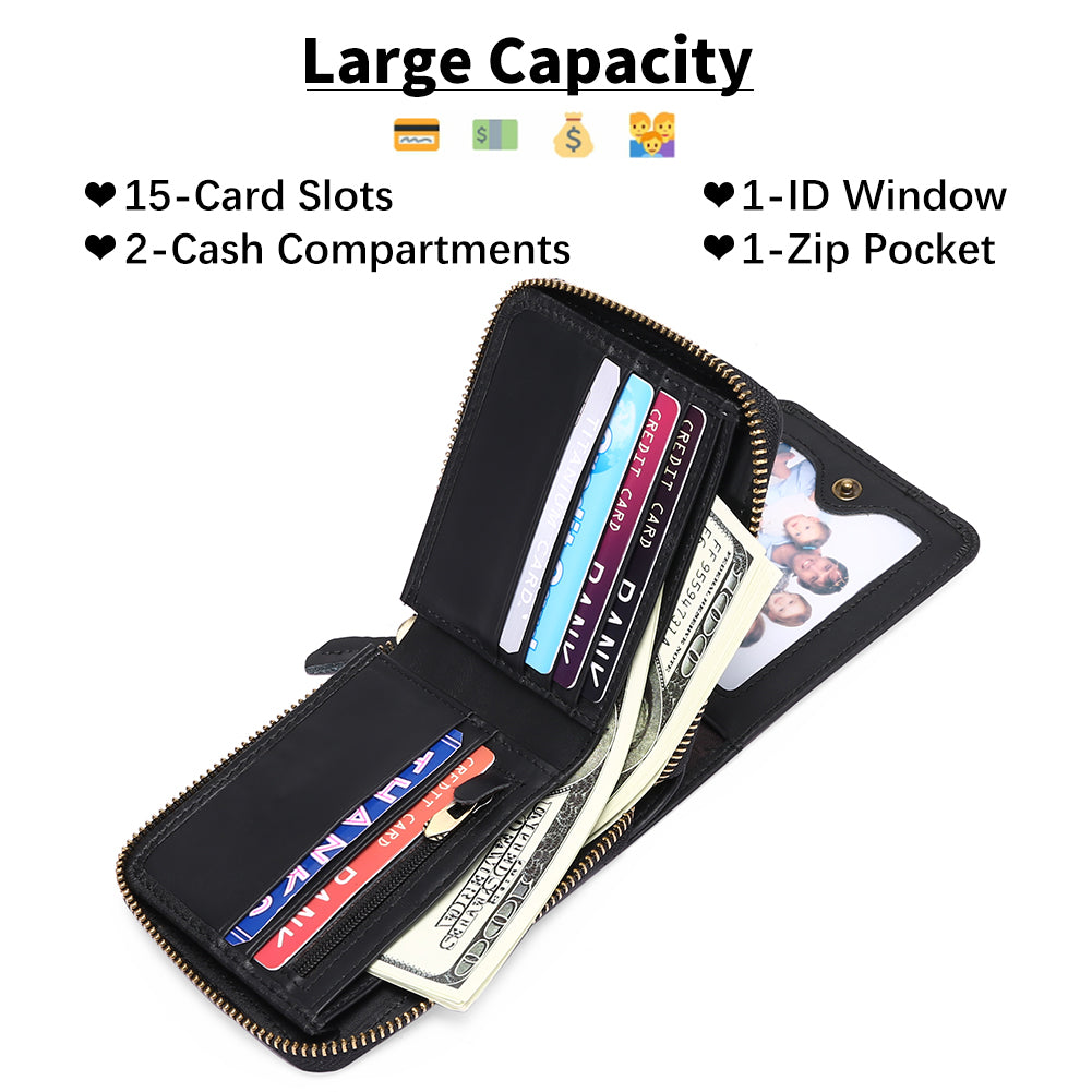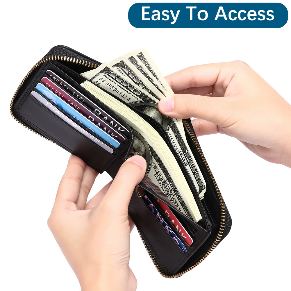 Sendefn Wallets for Men Leather Front Pocket Wallet RFID Zip Bifold Credit Card Holder